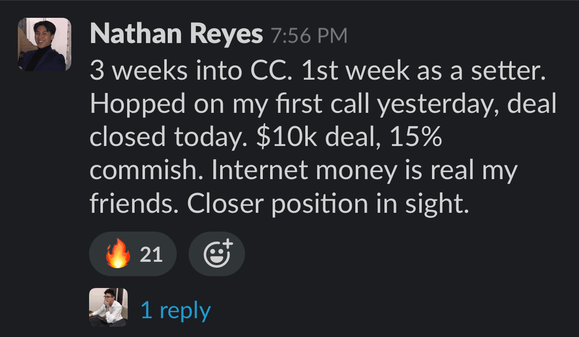As a broke 20 year old, with no college degree, I didn't fully believe that business owners would happily pay me thousands of dollars simply close deals for them.